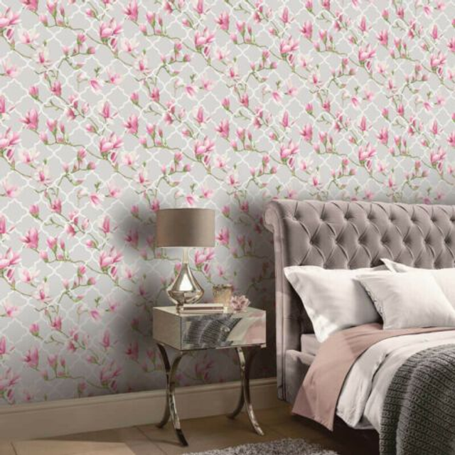 Magnolia Trellis Grey & Pink - Arthouse - 908000
