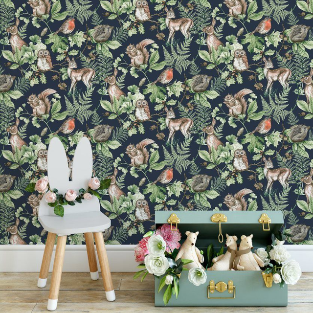 Woodland Animals - Navy - Kids